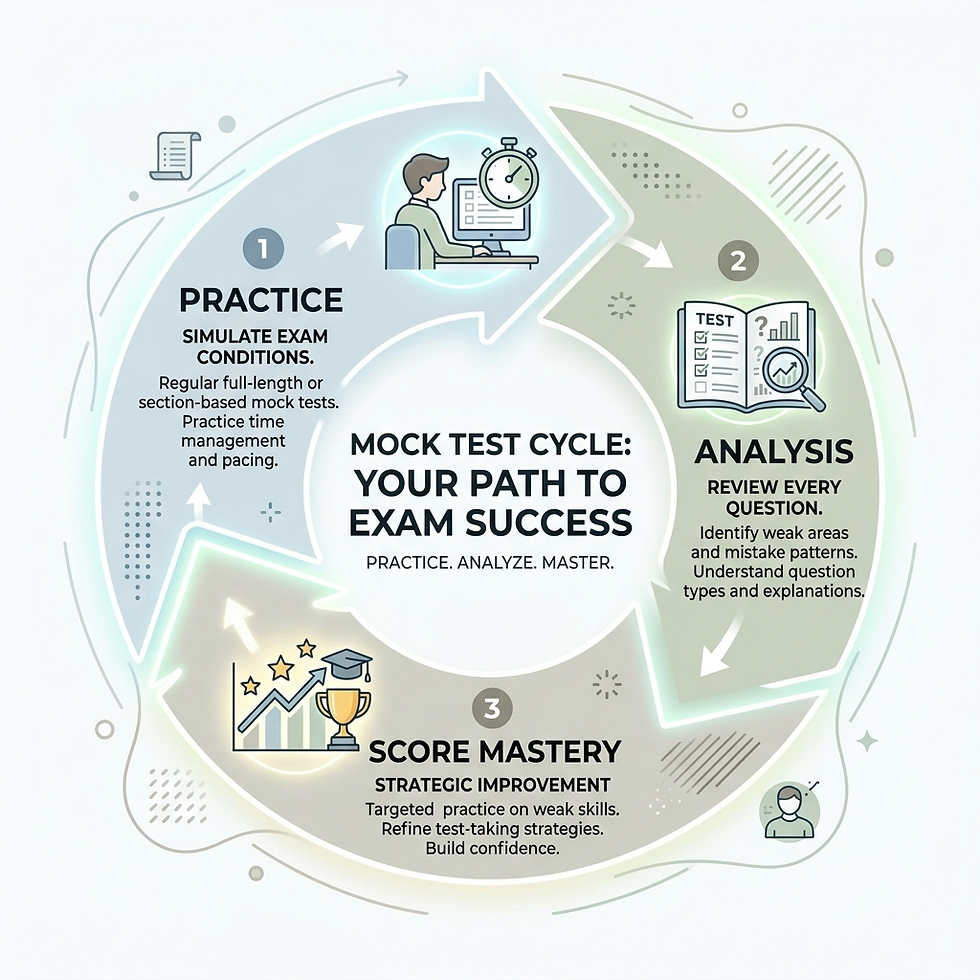 Mock tests are full-length or section-based practice exams that simulate real test conditions — and they're one of the most effective tools for improving scores.